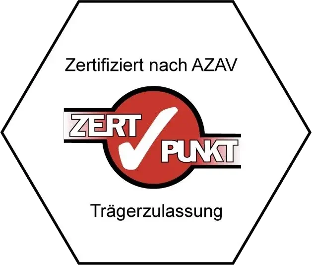 Zugelassener Träger nach Zertifizierung AZAV (Akkreditierungs- und Zulassungsverordnung Arbeitsförderung)